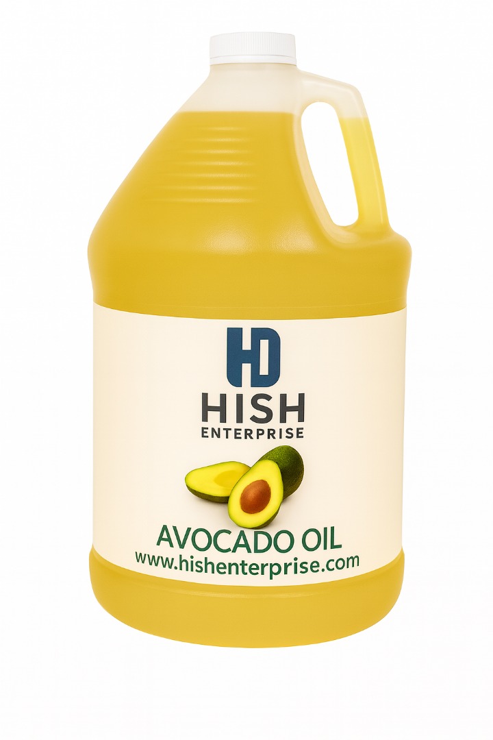Hish Enterprise Avocado Oil is extracted from the finest avocados through a cold-pressing process, ensuring that all the nutrients, vitamins, and healthy fats remain intact. Our oil is unrefined, free from additives, and packed with essential monounsaturated fats, omega-9 fatty acids, antioxidants, and vitamin E, making it a superior choice for both culinary and cosmetic uses.