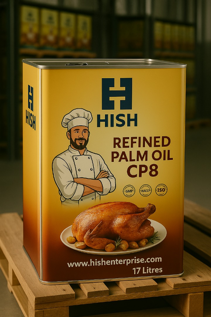Hish Enterprise supplies premium-grade Red Palm Oil in both crude and refined forms, sourced from certified plantations and processed under hygienic conditions. Our Red Palm Oil retains its distinctive reddish-orange hue due to its high beta-carotene and tocotrienol (Vitamin E) content, making it a favorite for both nutritional and cosmetic uses.